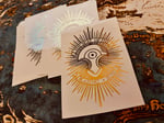 I'm sorry these stickers and my camera are not friends, it does not do them justice. This is a gold foil transparent backed sticker for the Seat of the Blazing Sun, Azem.