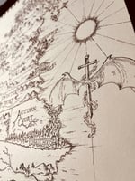 This work is traditional ink art and so any errors in the creation had to be dealt with accordingly, there is no crtl+z with traditional art! The photos for this listing are of the art piece and not the final prints, I will update with those once I get it, the photos are representative of the final product and not of it.